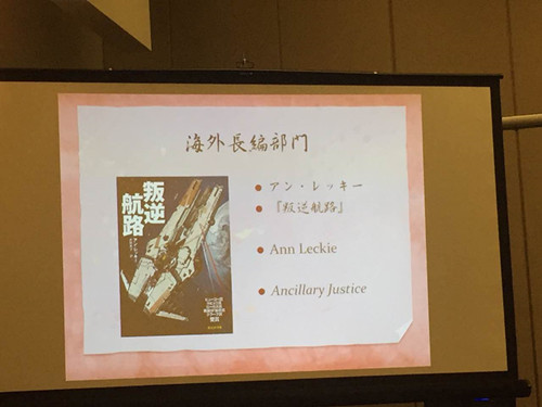 日本星云奖共设立最佳海外短篇、最佳海外长篇两个奖项,之前曾经获得雨果奖的知名科幻作家Ann Leckie凭借《Ancillary Justice》获得本届日本星云奖最佳海外长篇。