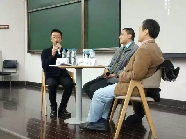 讲座现场(左起:贾立元、刘宇昆、吴岩)