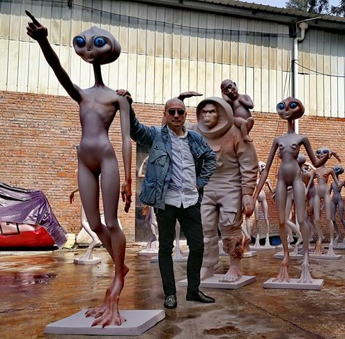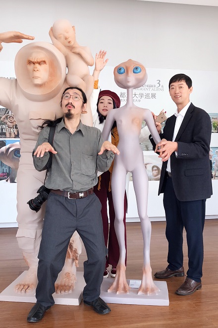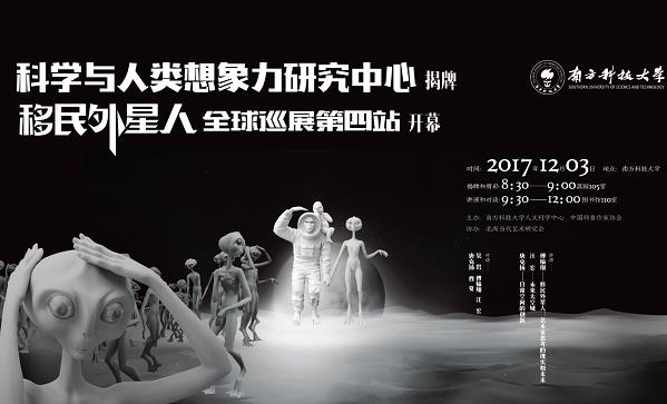来自重庆画院的跨界艺术家傅榆翔的全球巡回展览《移民外星人》,是“科学与人类想象力研究中心”成立之后第一场活动。《移民外星人》被誉为史诗般宏大而又指向未来的雕塑装置作品。该作品采用“超现实”手法,通过移民外星人隐喻人类当前和未来的困境和出路:一方面,科技正在带领人类发现全新的宇宙;另一方面,人类自身却异化于以往熟悉的环境。移民外星不单从社会人类学考证人类和历史,也从未来学角度思考当下的多元时代。