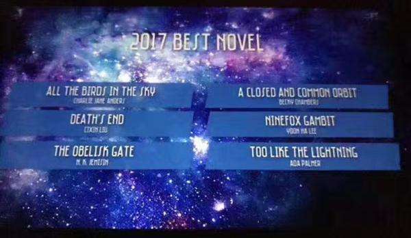 2017年4月,刘慈欣的《三体3:死神永生》英文版(Death’s End)获得2017年雨果奖最佳长篇科幻小说奖提名。这是“三体”三部曲第二次入围这一科幻最高奖,此前,《三体》第一部英文版曾获得2015年雨果奖最佳长篇小说奖。