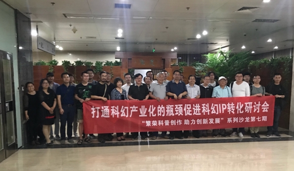 5月18日,由中国科普作家协会主办、成都时光幻象文化传播公司承办的"繁荣科普创作 助力创新发展”系列沙龙第七期“打通科幻产业化的瓶颈促进科幻IP转化”研讨会在北京科工大厦举办。科幻作家王晋康、韩松,科幻编剧吴霜以及科幻文化企业代表董仁威、余波、姜滨滨、林天强等三十余人就“如何打通科幻产业链瓶颈”、“催生中国科幻大片元年的理论与实践经验”等主题进行探讨。研讨会由中国科普作家协会常务副秘书长尹传红主持。