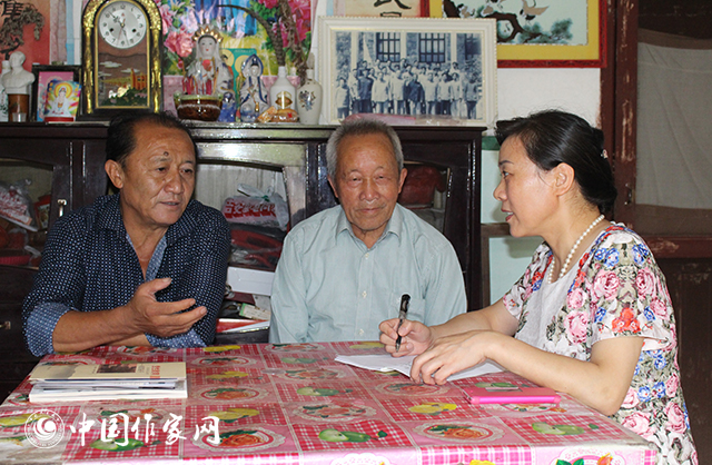 旷胡兰在井冈山茅坪乡茅坪村采访革命烈士李筱甫孙子和袁文才女婿