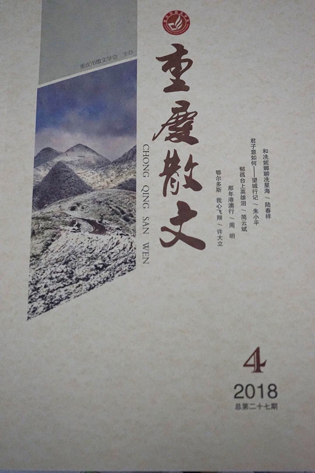 《重庆散文》系重庆市散文学会主办,2009年创刊,季刊,目前已出版27期,开辟了“美文”“品鉴”“巴渝”“情感”“萍踪”“流年”“校园”“军苑”“灯下”“初荷”等栏目。