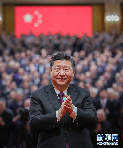 12月18日,庆祝改革开放40周年大会在北京人民大会堂隆重举行。中共中央总书记、国家主席、中央军委主席习近平在大会上发表重要讲话。这是习近平鼓掌向受表彰人员表示祝贺。 新华社记者 谢环驰 摄
