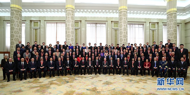 庆祝大会结束后,习近平等会见了受表彰人员及亲属代表,并同大家合影留念。