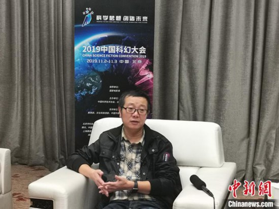 刘慈欣接受记者采访。中新网记者 宋宇晟 摄