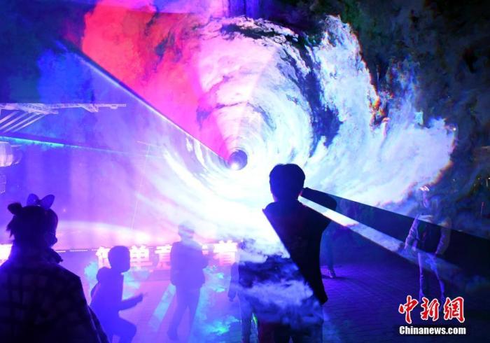 资料图:11月1日,2020中国科幻大会“科幻之夜”活动在北京首钢园三高炉举行,酷炫的灯光秀等内容为市民的周末生活增添乐趣。 中新社记者 侯宇 摄