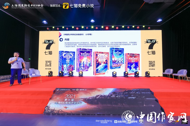此次论坛的科幻新书推介会上,苏学军的《洪荒战纪》《星魂勇士》系列,宝树、阿缺的《七国银河》,马传思、周群主编的《中国青少年科幻分级读本》(小学卷),苏学军、凌晨、冯志刚共同创作的《云上星球》系列等科幻新作受到关注。科幻影视推介会上,播放了多部即将上线的科幻电影片段,不但有刚获了第24届上海电影节金爵奖最佳真人短片奖、改编自王晋康作品的《生命之歌》,还有特效惊人的《火星异变》,以及学生创作的科幻卡通作品。