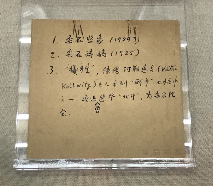展厅现场,鲁迅在柔石遗物封袋上写的目录