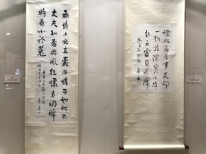 展厅现场,鲁迅书《答客诮》(左)