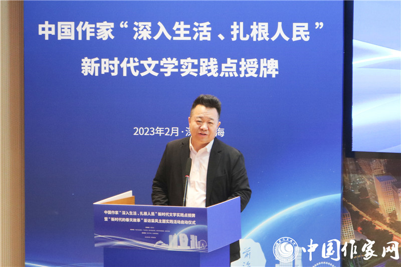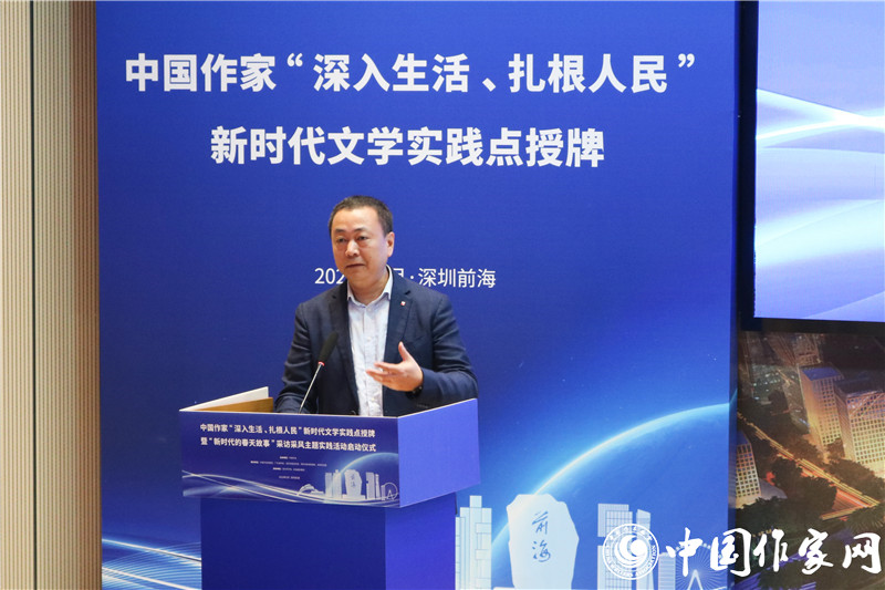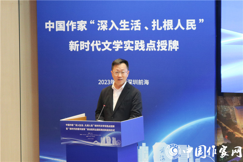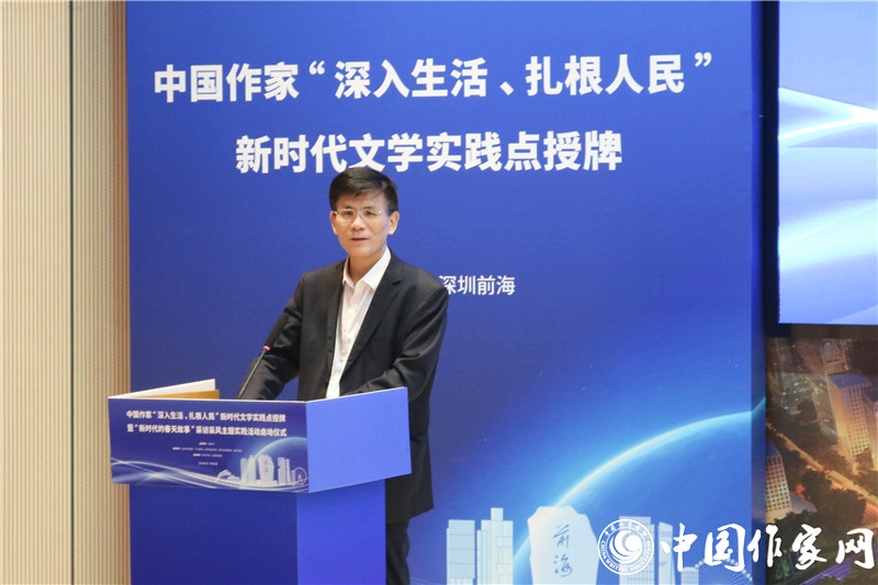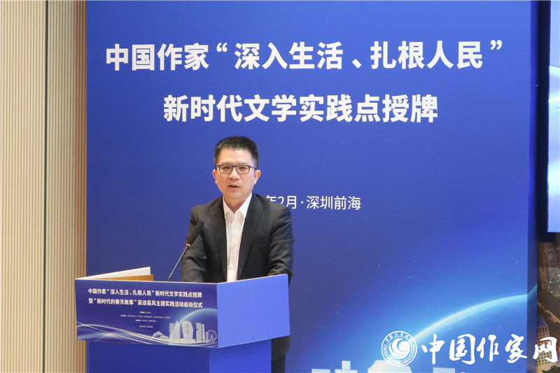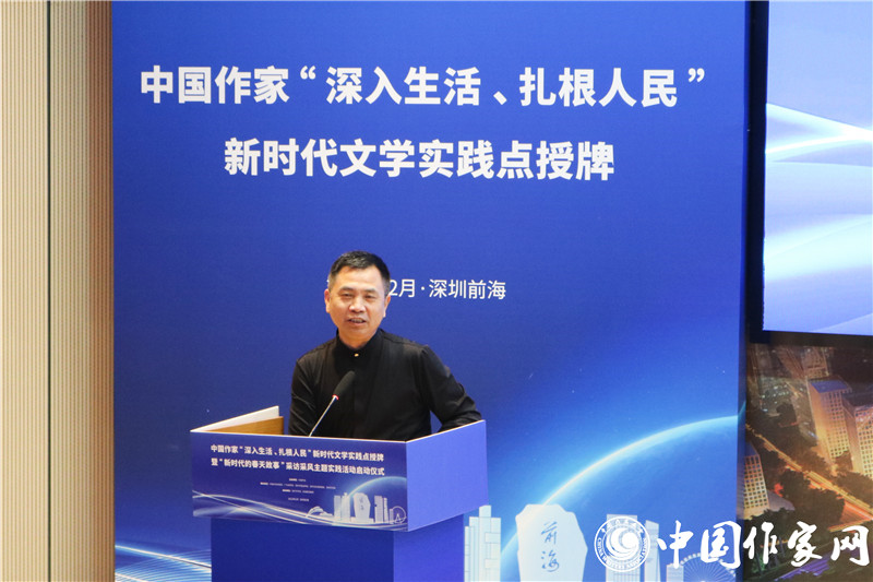 中国作协书记处书记邱华栋在讲话中指出,举行中国作家“深入生活、扎根人民”新时代文学实践点授牌暨“新时代的春天故事”主题采访采风活动,团结引领广大作家坚持“以人民为中心”的创作导向,让文学以更加主动的姿态为基层服务、为人民服务、在人民的口碑中绽放光芒,推动新时代文学高质量发展,具有特别的意义。前海地理条件优越、文学发展潜力巨大、组织机构健全,具备建设国家级新时代文学实践点的充分条件。要健全常下基层、常在基层的长效机制,不仅身要沉下去,而且情要融进去,真正吃透生活底蕴、汲取创作营养,让深入生活真正成为创作的必修课,鼓励作家走得出、沉得下、蹲得住。希望新时代文学实践点成为当地作家乃至全国作家的一块文学根据地,支持作家们在这块根据地上深入开掘、充分表现,生动讲述恢宏大气的国家故事、感人肺腑的社会故事、励志进取的个人故事,创作出属于新时代的新史诗。
