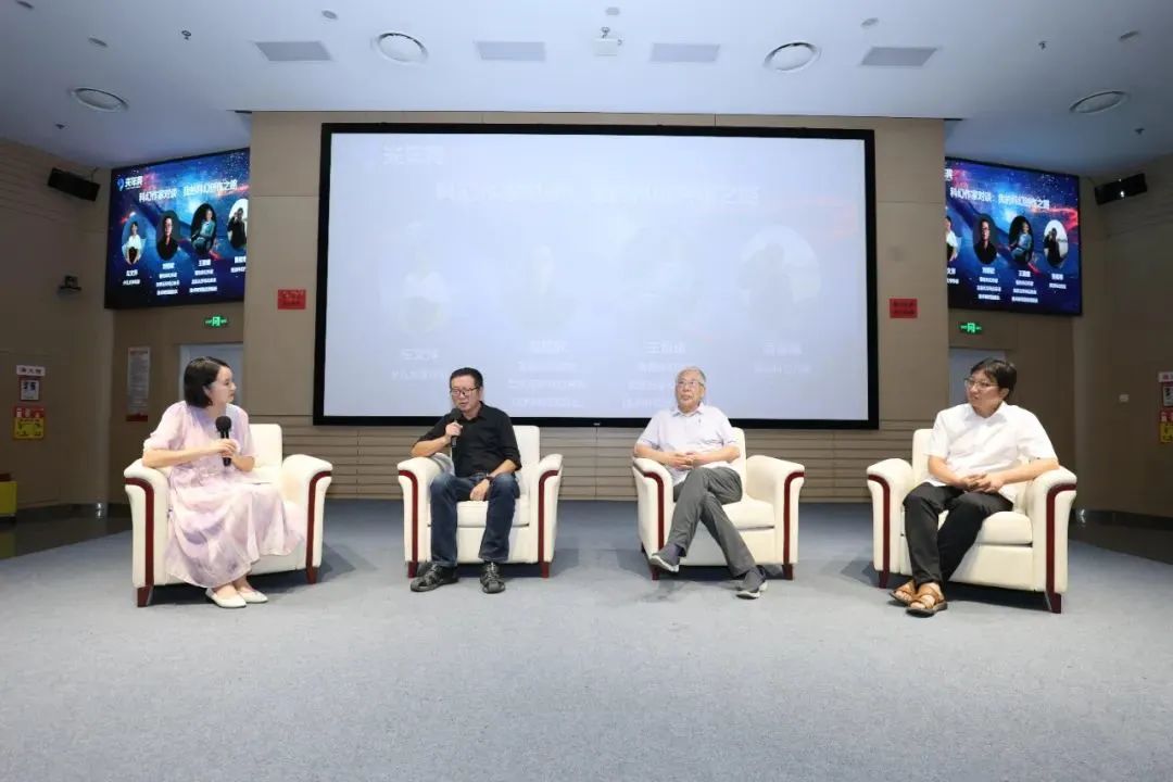 启动仪式之后,进入“播种幻想,逐梦光年”科幻创作沙龙环节,由少儿科幻作家左文萍主持。往届“光年奖”获奖作家吕默默、东心爰、王岑岑围绕“开启科幻创作的那一刻”,分享自己作为科幻新秀作家走上科幻创作的心路历程。刘慈欣、王晋康、萧星寒以“我的科幻创作之路为题”分享了自己作为科幻作家的成长历程,从自身出发鼓励更多青少年投入到科幻创作当中。现场观众反响热烈,与台上嘉宾进行积极互动,共同就科幻创作展开讨论。