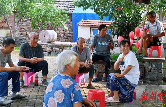 河南省林州市黄华镇庙荒村,村民在小院聊天休闲。 湖南日报全媒体记者 徐行 摄