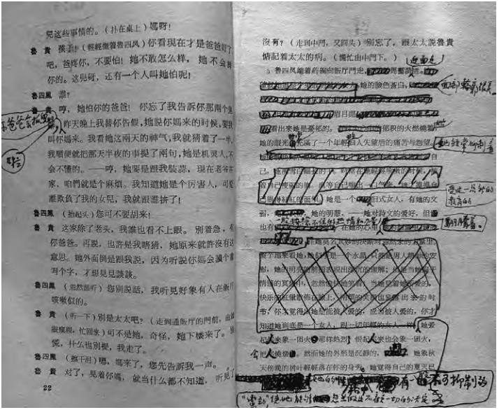 “付印本”中,当繁漪小传中对她的刻画只剩下“眼睛”时,她的“激情”就成了“不可抑制的蛮劲”所形成的“性格”,不再是“更原始的一点野性”。 她的“抑制”和“热烈”就不再是一种自然主义的“气质”,而成为现实主义的“性格”。