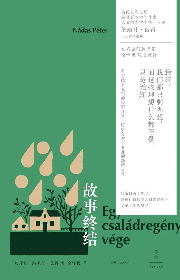 《故事终结》为纳道什作品首度引进,原作出版于1977年,是纳道什的长篇小说处女作,也是近三十年来,被译成语种最多的匈牙利语小说之一。故事的叙述者是一个生活在传统匈牙利家庭、由祖父母抚养长大的小男孩。男孩的生活经历与祖父给他讲的故事相互穿插,完全打破了线性的时间顺序和情节的连贯性,以小男孩跳跃的思维流动串联全文。如译者所言,小说的核心是记忆,“既是个体的记忆,也是集体的记忆,既是日常的记忆,也是历史的记忆”。