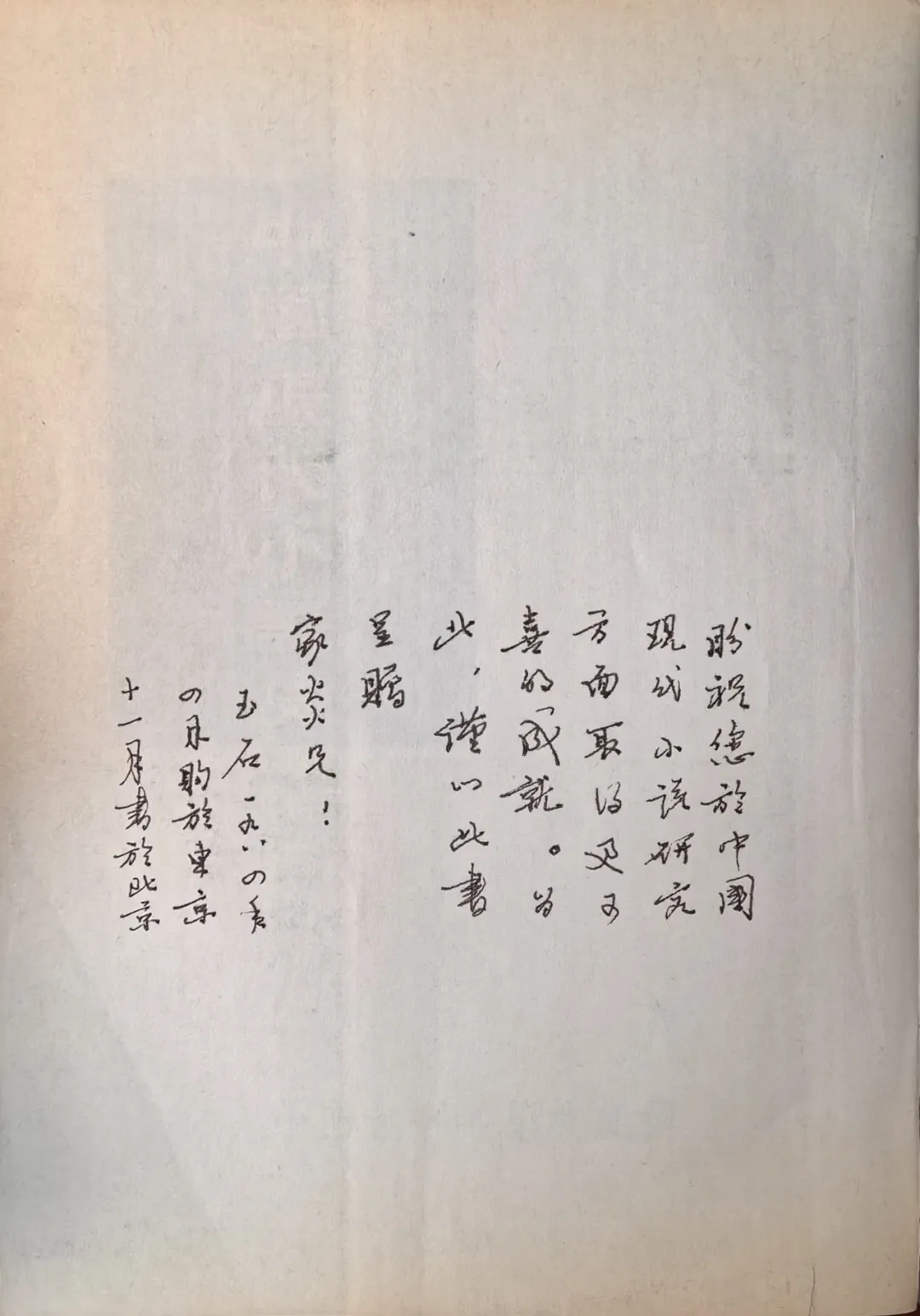 盼祝您于中国现代小说研究方面取得更可喜的成就。