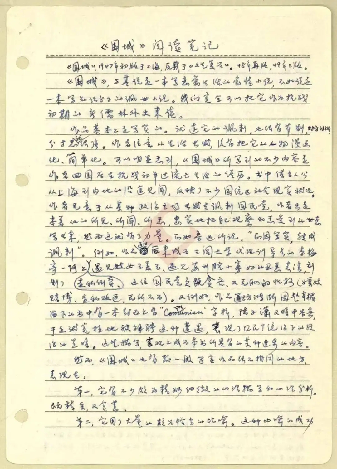 关于《围城》书中精彩处或有意义处,我已在行边用小圆点做了记号(·)。