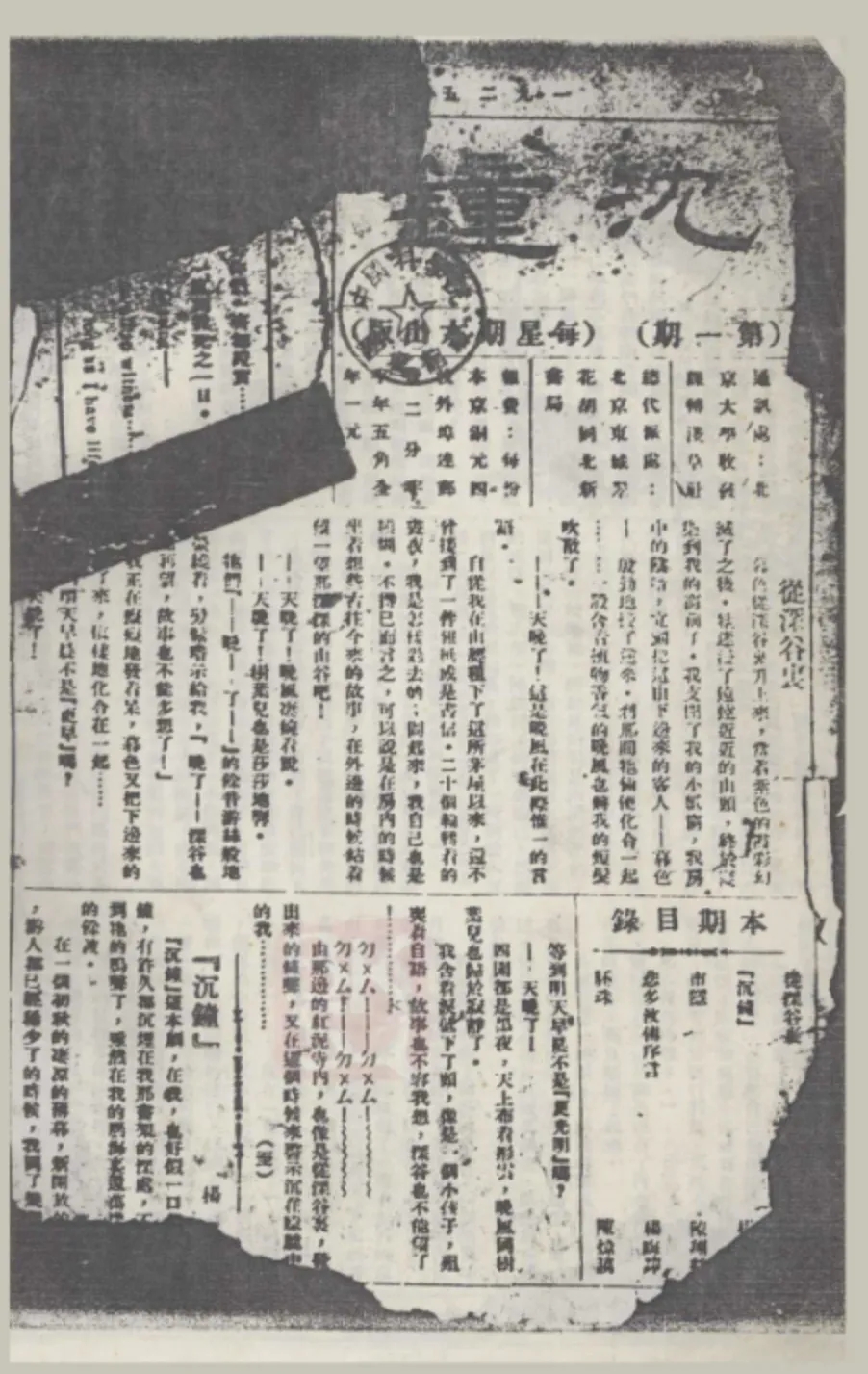 《沉钟》1925年第1期
