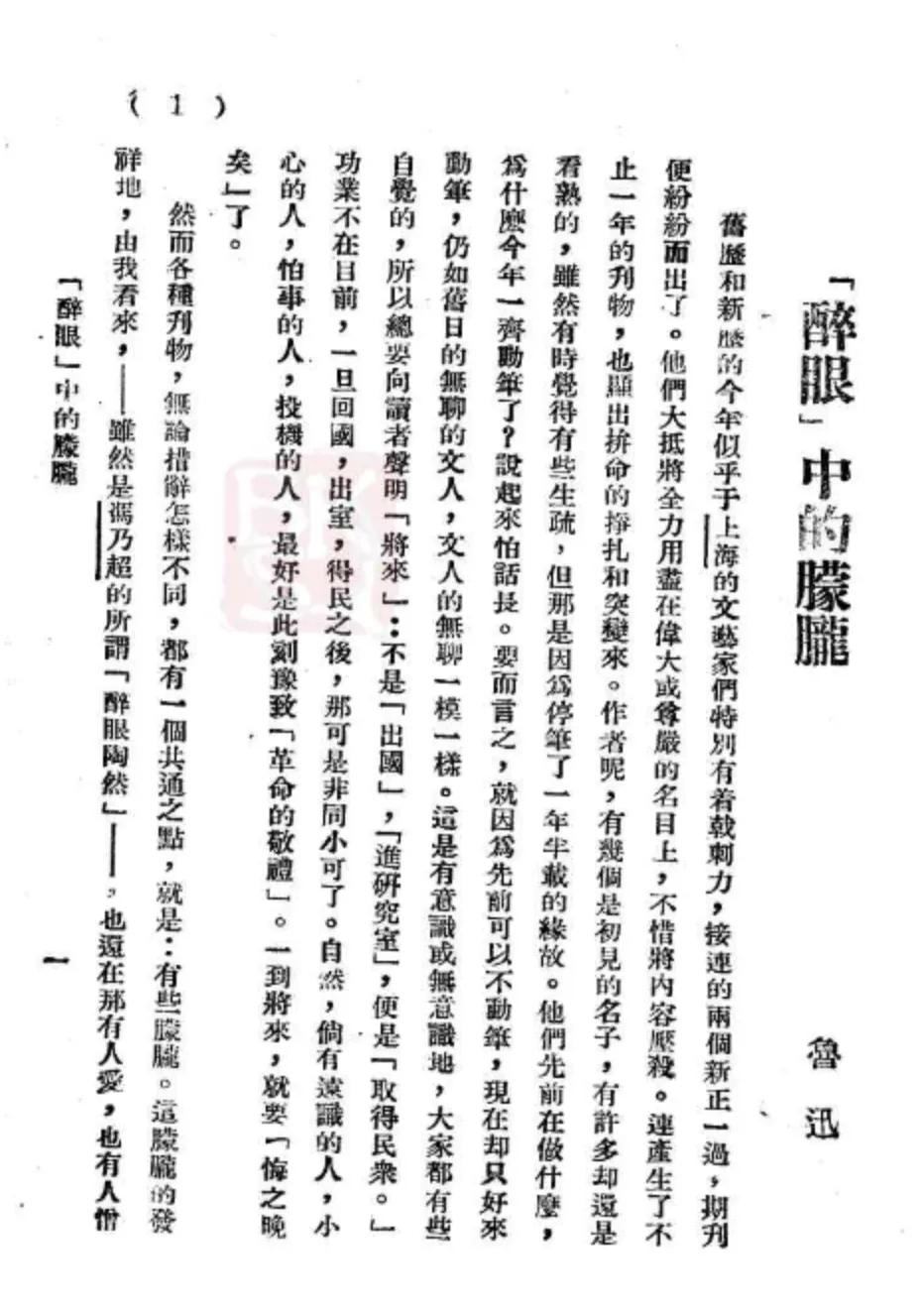 [39] 鲁迅:《“醉眼”中的朦胧》,《鲁迅全集》第4卷,人民文学出版社2005年版,第63页。