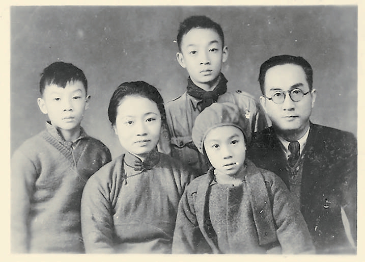 1940年邹韬奋全家摄于重庆,右起:邹韬奋、长子邹嘉骅(邹家华)、夫人沈粹缜、次子邹嘉骝、前为幼女邹嘉骊。