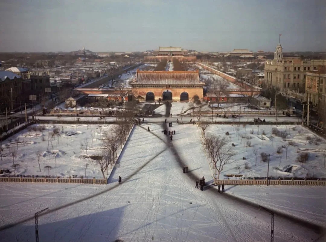1946年,《生活》杂志摄影师德米特里·凯塞尔(Dmitri Kessel)拍摄的中华门雪景。
