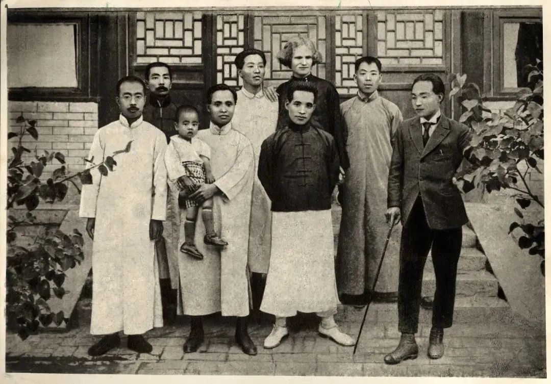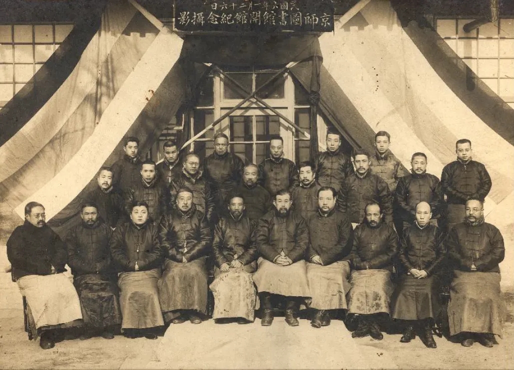 京师图书馆设立于1909年,最早位于广化寺。经鲁迅等多方努力,京师图书馆得以改建。1917年1月26日新馆在方家胡同开馆,这是开馆纪念合影。二排左5为鲁迅。