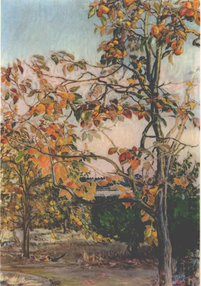 《秋庭红柿图》,1957年深秋,司徒乔第三次来到北京所绘。