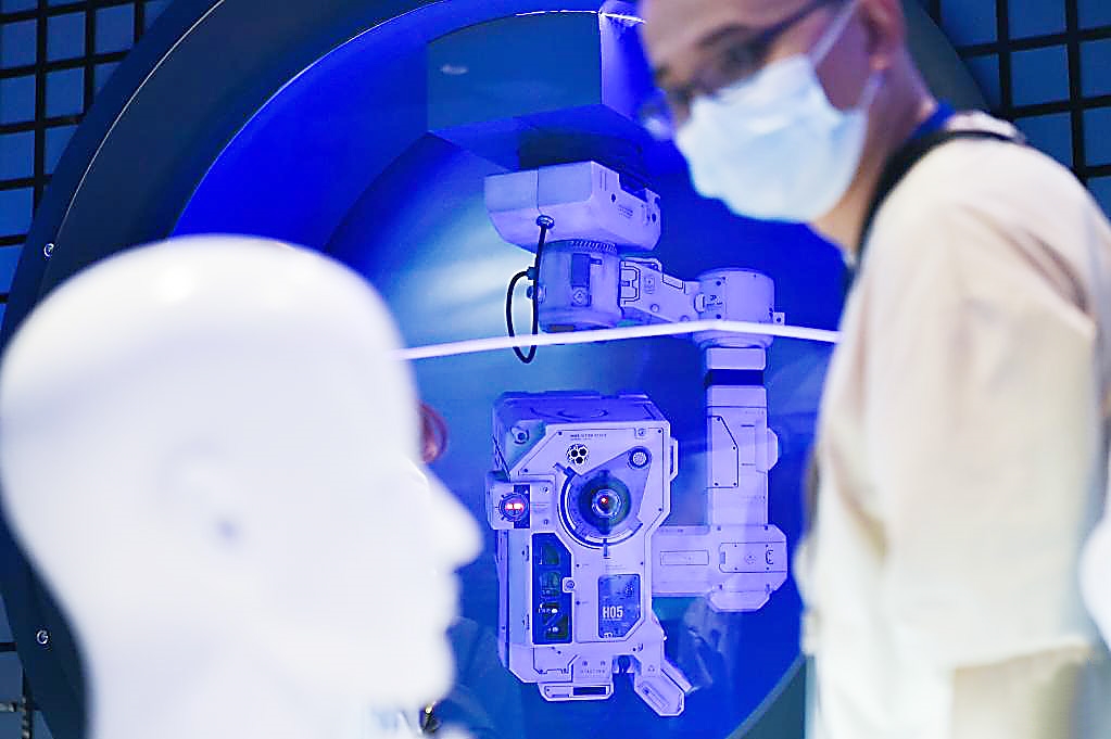 2024年5月30日,科幻电影《流浪地球》中的智能量子计算机MOSS在科幻产业新技术新产品展中展出。