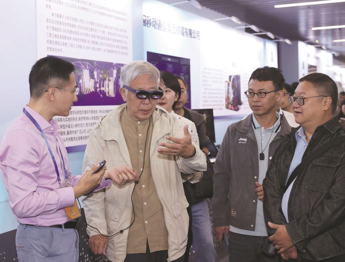 2024年9月24日,中国作家协会和中国科学技术协会共同主办的“科幻科普作家活动周”期间,科幻科普作家们一同参观中国科学家博物馆。图为科幻作家王晋康使用展览中的实验装置。