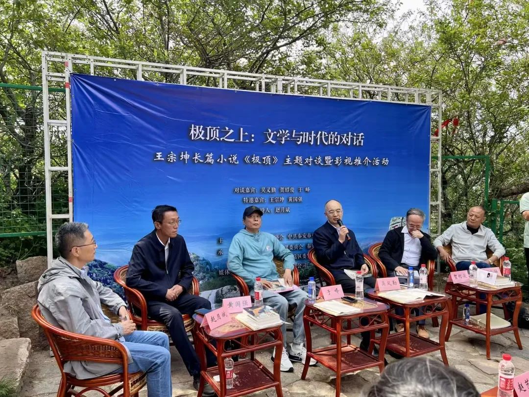 5月30日,由山东省作家协会、中共泰安市委宣传部主办,泰山名胜风景管理委员、泰安市文联、泰安市作协、中共岱岳区委宣传部、《作家文摘》报社有限公司承办的“极顶之上:文学与时代的对话——王宗坤长篇小说《极顶》主题对谈暨影视推介活动”在泰山极顶大观峰下举行。中国作协党组成员、副主席、书记处书记吴义勤,中国当代文学研究会副监事长贺绍俊,北京星港影视文化传媒有限公司董事长于峰,《极顶》作者王宗坤,《极顶》主人公原型黄国强等出席了活动。对谈活动由山东师范大学教授、博士生导师赵月斌主持。