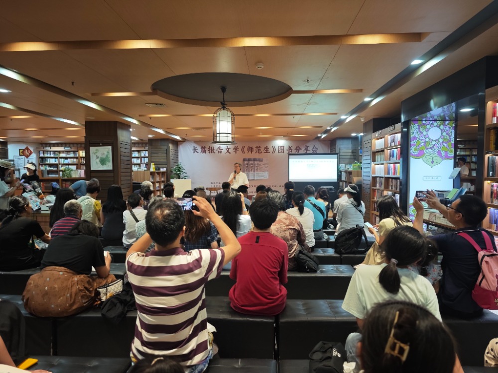 6月7日下午,一场饱含教育情怀与文学温度的图书分享会在沙坪坝书城温暖举行——长篇报告文学《师范生》图书分享会,吸引了来自重庆文学院、重庆师范大学文学院、西南大学文学院、沙区作协等单位的近百名文学爱好者与热心读者,共同聆听这部致敬中国师范群体的时代之作。