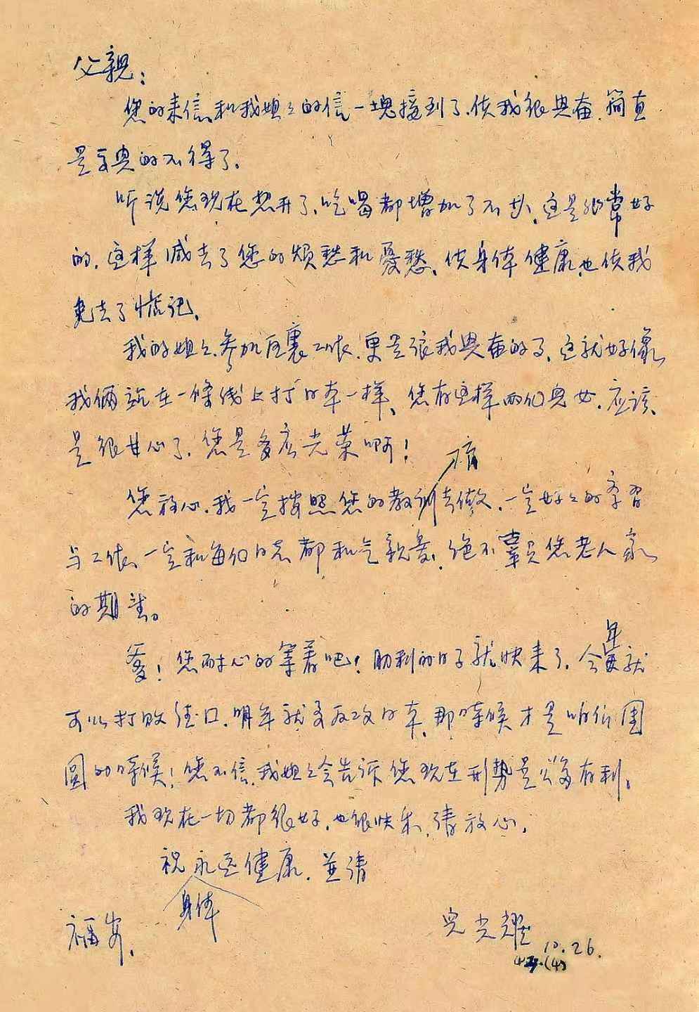 这音信一断就是四五年,家里不知我的死活,我也不知道家里的情况。直到1944年10月24日,我突然接到了姐姐的一封信。