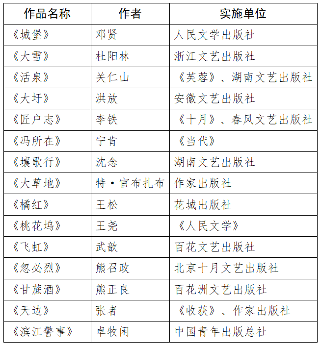 新时代文学攀登计划第六期支持项目名单
