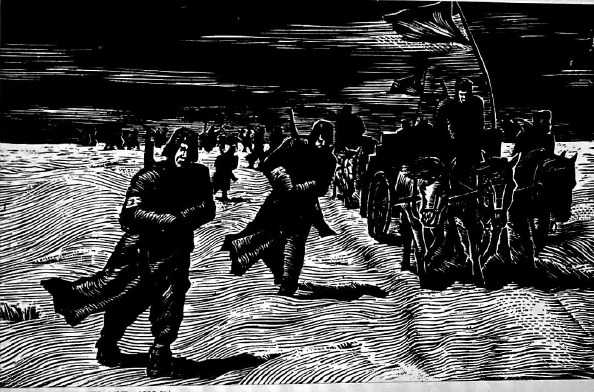 江丰《冰雪中的东北抗日义勇军》(版画,1937年)