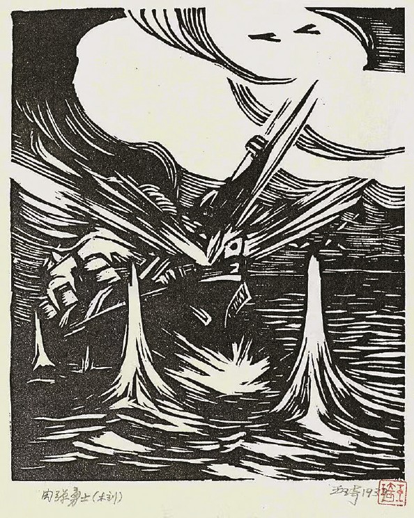 王琦《肉弹勇士》(黑白木刻,1939年)