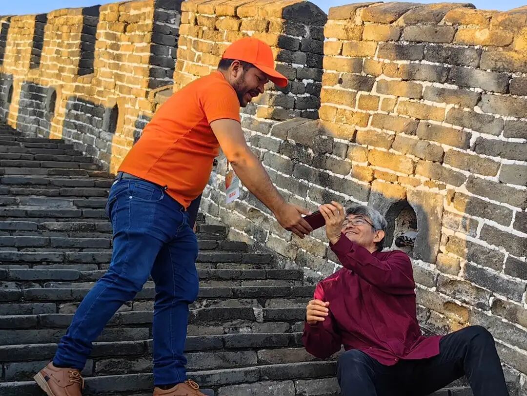 嘿兄弟,看看我拍得怎么样?巴拿马诗人哈维尔·阿尔瓦拉多与墨西哥诗人罗伯托·阿库尼亚在长城上。陈泽宇 摄。