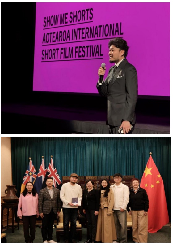 10月7日,在第20届新西兰秀美国际短片电影节上,中国首次担任荣誉主宾国。《转人工》作为开幕夜首映电影在奥克兰一座有着140多年历史的古典剧场The Civic正式放映。来自不同国家的700多位观众汇聚一堂,在不断的欢笑声中欣赏了这部充满文学意味的“有趣的电影”。奥克兰中国文化中心负责人王建文在致辞中表示:“短片艺术是影像语言中最具张力与实验精神的形式。希望通过这样的国际平台,让世界更好地了解当代中国青年人的思考与表达,也促进中新两国的文化互鉴与情感共鸣。”在映后交流中,不断有热心观众围着刘汉霖,表达对这部电影反映的社会问题的认同感,期待读到更多他的文学作品。