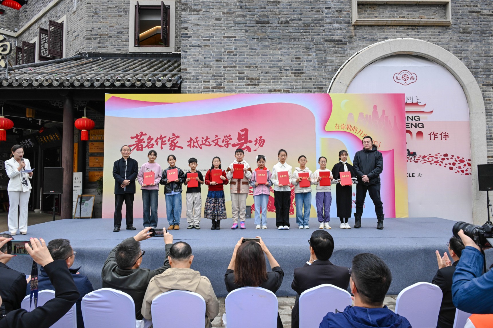 活动上,刘亮程与黑鹤为弥勒“星光优秀小作者”获奖代表颁奖,萌芽的新苗将在文学的道路上继续茁壮成长,绽放光彩。