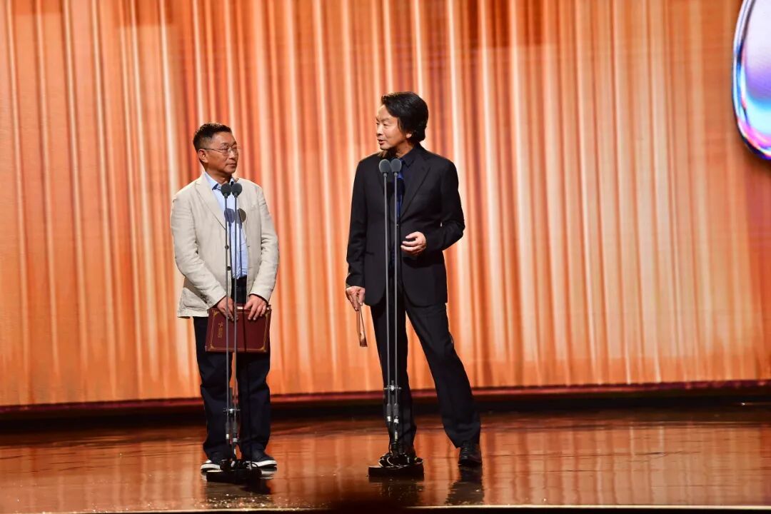 陈彦(左)为儿童绘本奖、青年作者短篇佳作奖开奖