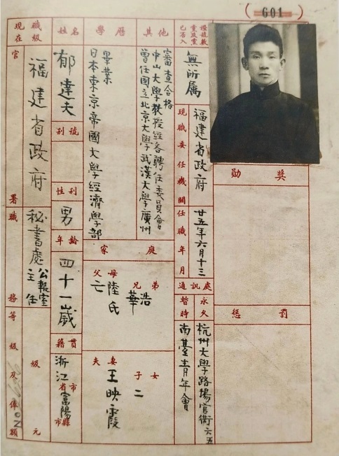 郁达夫在福州任职期间的档案