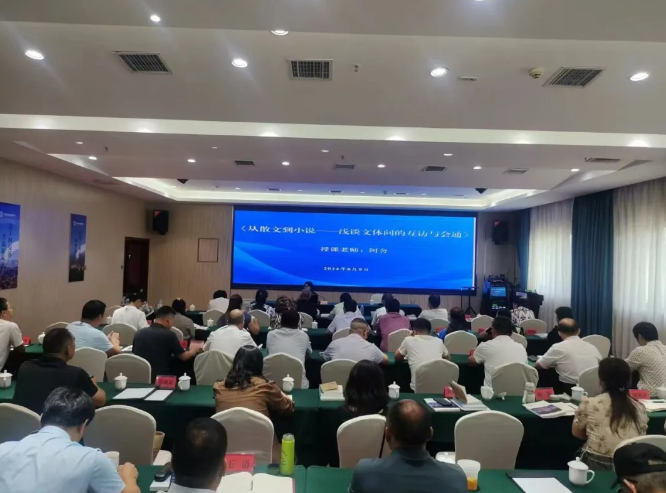 开班在河南省作协副主席,《莽原》文学杂志社原主编、著名作家王安琪的《小说的形状》中拉开序幕,王安琪先生结合自己三十年编辑和写作经验,就如何写出一篇好小说系统地进行了讲解。通过语言的形状、故事的形状、人物的形状等方面进行了讲授。深入浅出的理论、通俗易懂的讲述,旁征博引的事例,让学员们深切感受到好作品一定要有好的形状。用“所有的文学都是有形状的”“好的语言是绊住眼的”“文字中沙里藏金”“最有个性的方言”等点睛之“语”,使学员深受启发,回应当前文学创作中普遍存在和关切的问题。