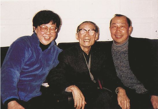 二十世纪八十年代黄会林(左一)、绍武(右一)与夏衍合影