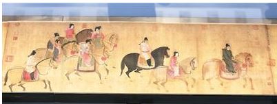 辽宁省博物馆展出的宋摹张萱《虢国夫人游春图》。