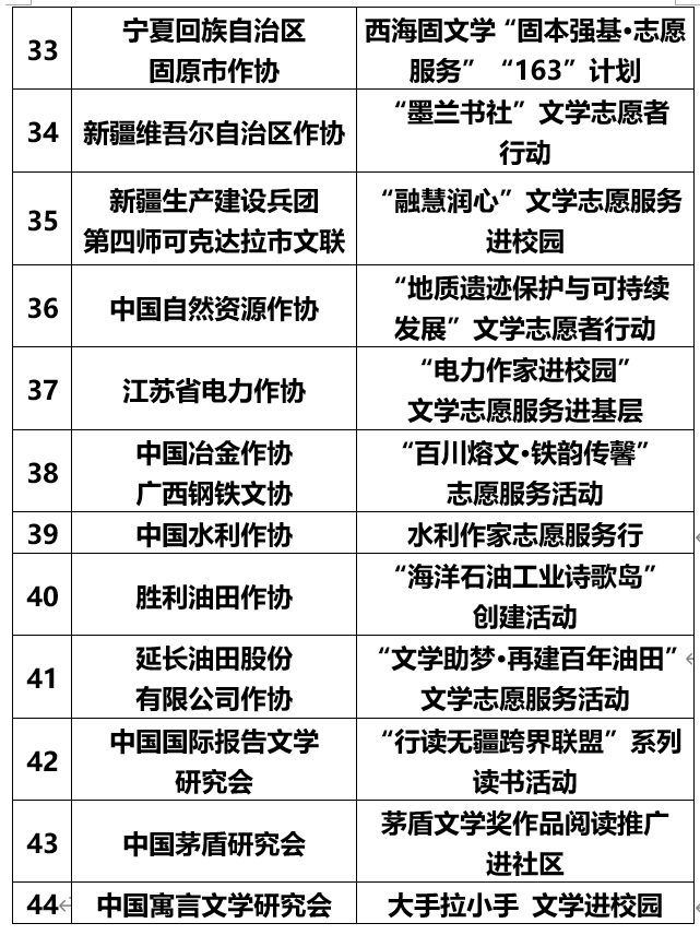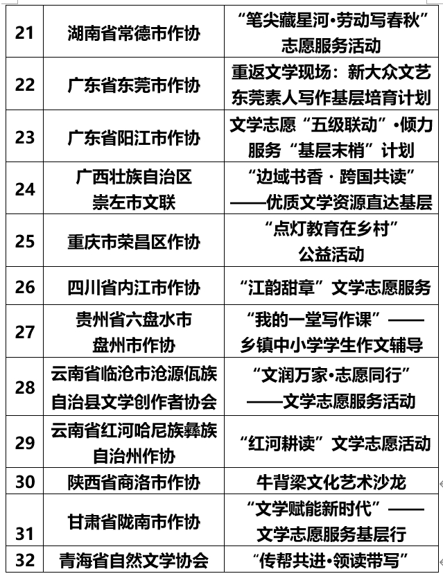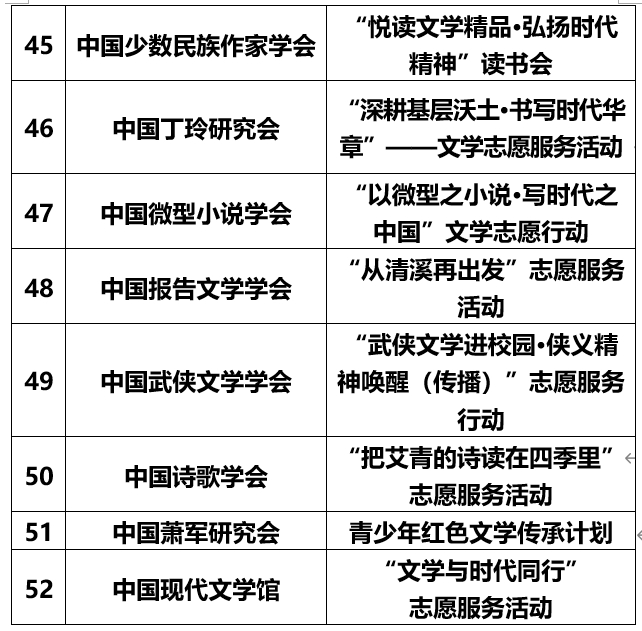 2026年度文学志愿服务示范性重点扶持项目名单公布