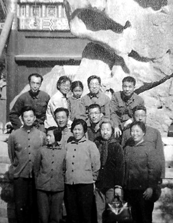 找出一张半个多世纪前、十三中语文教研室部分同仁的游园合照,我与沙老师、伍老师同在最后一排,第二排左一的张金俊老师,他退休后于2015年出版《苦途》一书,被认为是“骑行文学”的佳作。网络上多有关于他与我关系的说法,如“与刘心武曾同桌办公,是《班主任》张俊石的原型之一,刘心武曾以‘阿张’相称”。这表述是准确的。也有记者直接问到我,我说诚如鲁迅先生所言,小说中的人物形象,人物模特不必专用一个人,“往往嘴在浙江,脸在北京,衣服在山西,是一个拼凑起来的角色”,但《班主任》里的张老师,拼凑形象时,张金俊老师的外形气质,所占份额确实较多。